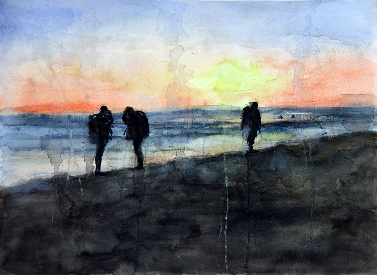 Scuba Divers on Beach, Sunset prev